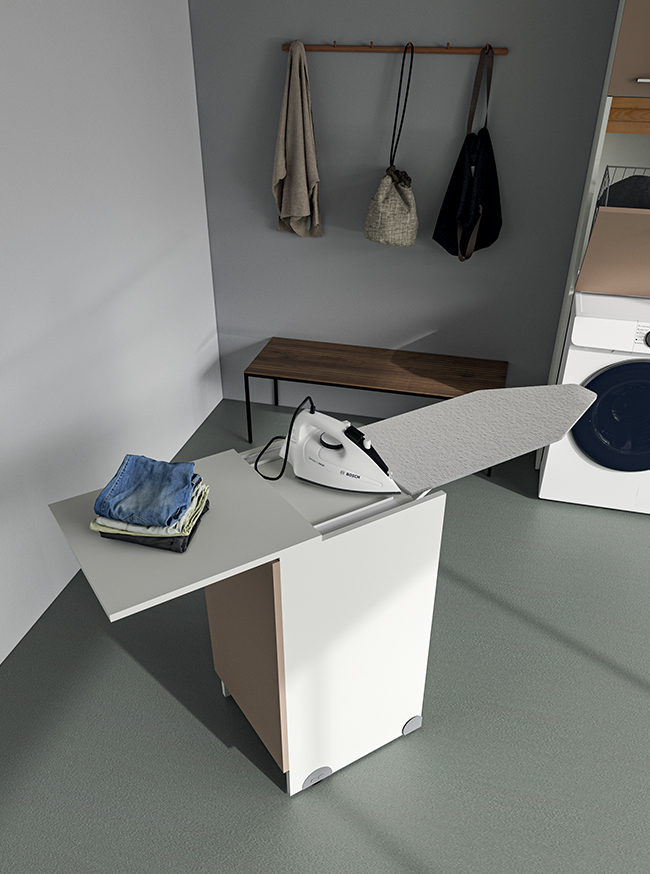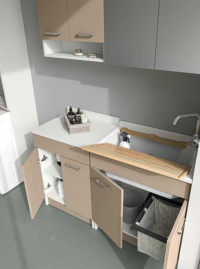 Particle board cabinet 18 mm. Waterproof in conformity with EN norms. Gloss laminate.