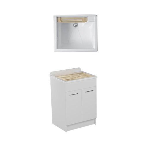 Fornito di cestello portabianchera (scorrevole estraibile), talvolta lavapanni in legno massello, lavatoio in ABS metacrilato, sifone e troppopieno, manigliette cromate.
