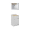 Fornito di tavola lavapanni in legno massello, lavatoio in ABS metacrilato, sifone e troppopieno, manigliette cromate.